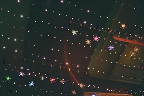 のりたまさん、蝶々夫人さん、yokoさん、こんばんは。 >のりたまさん、蝶々夫人さん これはサンストリート亀戸で撮った写真です。マーケット広場から奥に続く クネクネ曲がった通路を見上げてみてください。 >yokoさん 夜空から金平糖って、楽しげでいいですね(^^